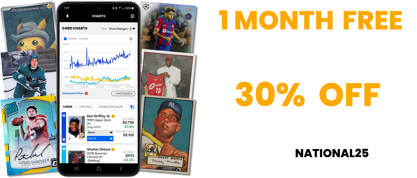 Featuring the hobby’s largest validated database with 1 Million+ cards and 5,000+ sealed products including all sports, and non-sports like Pokemon, Marvel and more! Plus pricing data for the major grading companies (PSA, BGS, SGC, CGC).